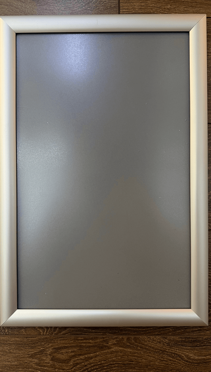 Cadre double face avec une superposition transparente pour la protection graphique. Taille graphique 24" x 34".